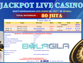 BOLAGILA JACKPOT LIVE CASINO di 5D BALL Rp 80.000.000,- LUNAS MEMBER BOLAGILA MENERIMA PELUNASAN KEMENANGAN BOLAGILA JACKPOT LIVE CASINO di 5D BALL Rp 80.000.000,- LUNAS […]