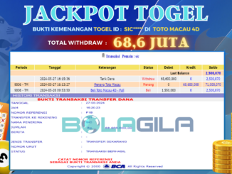 BOLAGILA JACKPOT TOGEL DI TOTO MACAU 4D Rp 68.600.000,- LUNAS