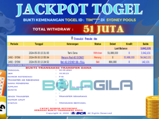 BOLAGILA JACKPOT TOGEL DI SYDNEY POOLS Rp 60.000.000,- LUNAS MEMBER BOLAGILA MENERIMA PELUNASAN KEMENANGAN JACKPOT TOGEL DI SYDNEY POOLS Rp 60.000.000,- LUNAS “BOLAGILA Situs Togel […]
