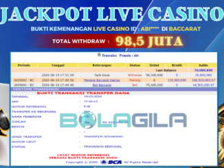 BOLAGILA JACKPOT LIVE CASINO DI ROULETTE 2 Rp 75.000.000,- LUNAS MEMBER BOLAGILA JACKPOT LIVE CASINO DI ROULETTE 2 Rp 75.000.000,- LUNAS “BOLAGILA Situs Togel Online, […]