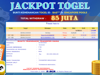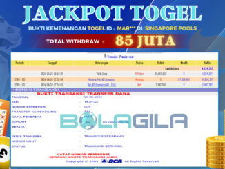 BOLAGILA JACKPOT TOGEL di SINGAPORE POOLS Rp 85.000.000,- LUNAS MEMBER BOLAGILA MENERIMA PELUNASAN KEMENANGAN JTOGEL di SINGAPORE POOLS Rp 85.000.000,- LUNAS “BOLAGILA Situs Togel Online, […]