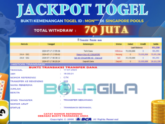 BOLAGILA JACKPOT TOGEL di SINGAPORE POOLS Rp 70.000.000,- LUNAS