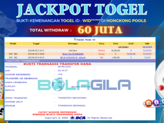 BOLAGILA JACKPOT TOGEL HONGKONG POOLS Rp 60.000.000,- LUNAS