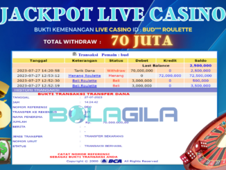 BOLAGILA JACKPOT LIVE CASINO DI ROULETTE RP 70.000.000,- LUNAS MEMBER BOLAGILA MENERIMA PELUNASAN KEMENANGAN JACKPOT LIVE CASINO DI ROULETTE RP 70.000.000,- LUNAS “BOLAGILA Situs Togel […]