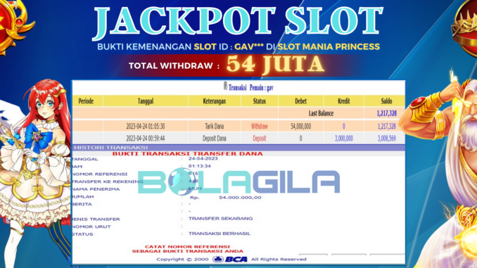 BOLAGILA JACKPOT SLOT MANIA PRINCESS Rp 54.000.000,- LUNAS