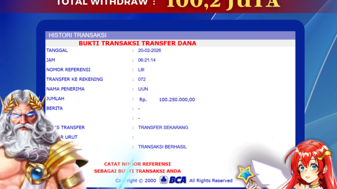 Bukti transfer yang dapat anda lihat adalah bukti SAH / VALID yang langsung di dapatkan melalui bukti transaksi dari Bank yang digunakan untuk pengiriman dana pada rekening pemilik user id. Terima kasih kami sampaikan kepada para pengguna setia BOLAGILA yang telah menggunakan situs kami, sebagai Bandar Terpercaya yang pastinya membayar semua kemenangan member hingga lunas. Apakah BOLAGILA PENIPU ? Reputasi “BOLAGILA TERPERCAYA” sudah sangat melekat.