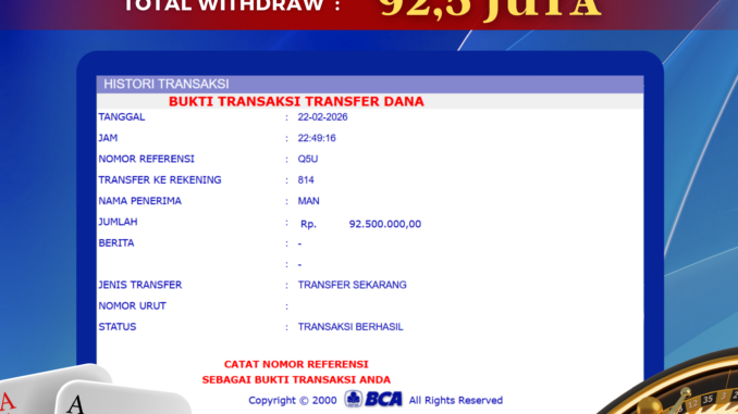 Bukti transfer yang dapat anda lihat adalah bukti SAH / VALID yang langsung di dapatkan melalui bukti transaksi dari Bank yang digunakan untuk pengiriman dana pada rekening pemilik user id. Terima kasih kami sampaikan kepada para pengguna setia BOLAGILA yang telah menggunakan situs kami, sebagai Bandar Terpercaya yang pastinya membayar semua kemenangan member hingga lunas. Apakah BOLAGILA PENIPU ? Reputasi “BOLAGILA TERPERCAYA” sudah sangat melekat.