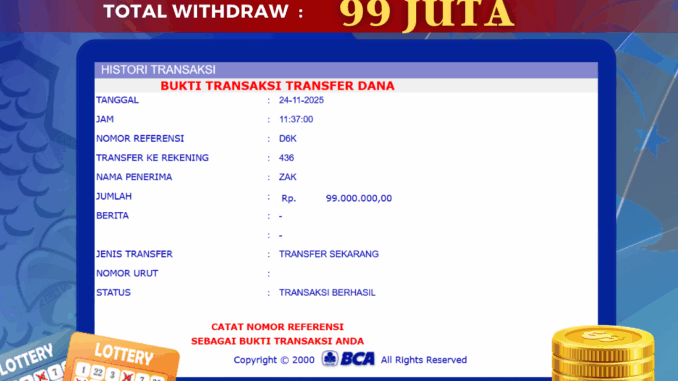 Bukti transfer yang dapat anda lihat adalah bukti SAH / VALID yang langsung di dapatkan melalui bukti transaksi dari Bank yang digunakan untuk pengiriman dana pada rekening pemilik user id. Terima kasih kami sampaikan kepada para pengguna setia BOLAGILA yang telah menggunakan situs kami, sebagai Bandar Terpercaya yang pastinya membayar semua kemenangan member hingga lunas. Apakah BOLAGILA PENIPU ? Reputasi “BOLAGILA TERPERCAYA” sudah sangat melekat.