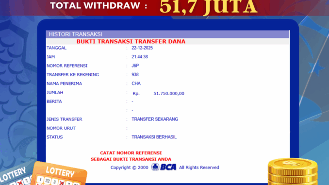 Bukti transfer yang dapat anda lihat adalah bukti SAH / VALID yang langsung di dapatkan melalui bukti transaksi dari Bank yang digunakan untuk pengiriman dana pada rekening pemilik user id. Terima kasih kami sampaikan kepada para pengguna setia BOLAGILA yang telah menggunakan situs kami, sebagai Bandar Terpercaya yang pastinya membayar semua kemenangan member hingga lunas. Apakah BOLAGILA PENIPU ? Reputasi “BOLAGILA TERPERCAYA” sudah sangat melekat.