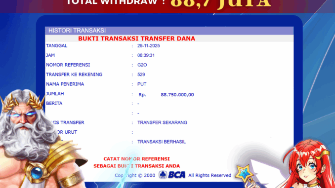 Bukti transfer yang dapat anda lihat adalah bukti SAH / VALID yang langsung di dapatkan melalui bukti transaksi dari Bank yang digunakan untuk pengiriman dana pada rekening pemilik user id. Terima kasih kami sampaikan kepada para pengguna setia BOLAGILA yang telah menggunakan situs kami, sebagai Bandar Terpercaya yang pastinya membayar semua kemenangan member hingga lunas. Apakah BOLAGILA PENIPU ? Reputasi “BOLAGILA TERPERCAYA” sudah sangat melekat.