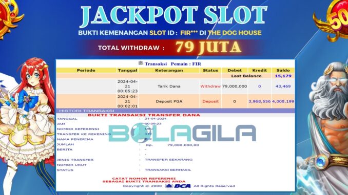 MEMBER BOLAGILA MENERIMA PELUNASAN KEMENANGAN JACKPOT SLOT DI THE DOG HOUSE Rp 79.000.000,- LUNAS