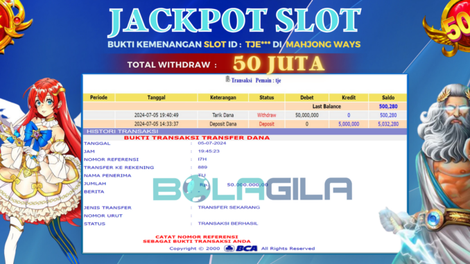 BOLAGILA JACKPOT SLOT di MAHJONG WAYS Rp 50.000.000,- LUNAS