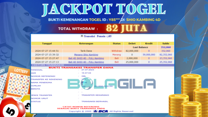 BOLAGILA JACKPOT TOGEL DI SHIO KAMBING 4D Rp 82.000.000,- LUNAS