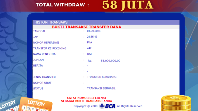 Bukti transfer yang dapat anda lihat adalah bukti SAH / VALID yang langsung di dapatkan melalui bukti transaksi dari Bank yang digunakan untuk pengiriman dana pada rekening pemilik user id. Terima kasih kami sampaikan kepada para pengguna setia BOLAGILA yang telah menggunakan situs kami, sebagai Bandar Terpercaya yang pastinya membayar semua kemenangan member hingga lunas. Apakah BOLAGILA PENIPU ? Reputasi “BOLAGILA TERPERCAYA” sudah sangat melekat.