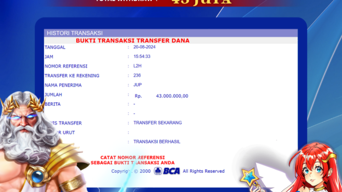Bukti transfer yang dapat anda lihat adalah bukti SAH / VALID yang langsung di dapatkan melalui bukti transaksi dari Bank yang digunakan untuk pengiriman dana pada rekening pemilik user id. Terima kasih kami sampaikan kepada para pengguna setia BOLAGILA yang telah menggunakan situs kami, sebagai Bandar Terpercaya yang pastinya membayar semua kemenangan member hingga lunas. Apakah BOLAGILA PENIPU ? Reputasi “BOLAGILA TERPERCAYA” sudah sangat melekat.