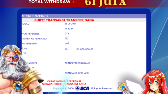 Bukti transfer yang dapat anda lihat adalah bukti SAH / VALID yang langsung di dapatkan melalui bukti transaksi dari Bank yang digunakan untuk pengiriman dana pada rekening pemilik user id. Terima kasih kami sampaikan kepada para pengguna setia BOLAGILA yang telah menggunakan situs kami, sebagai Bandar Terpercaya yang pastinya membayar semua kemenangan member hingga lunas. Apakah BOLAGILA PENIPU ? Reputasi “BOLAGILA TERPERCAYA” sudah sangat melekat.