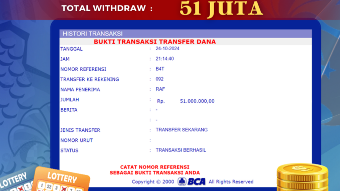 Bukti transfer yang dapat anda lihat adalah bukti SAH / VALID yang langsung di dapatkan melalui bukti transaksi dari Bank yang digunakan untuk pengiriman dana pada rekening pemilik user id. Terima kasih kami sampaikan kepada para pengguna setia BOLAGILA yang telah menggunakan situs kami, sebagai Bandar Terpercaya yang pastinya membayar semua kemenangan member hingga lunas. Apakah BOLAGILA PENIPU ? Reputasi “BOLAGILA TERPERCAYA” sudah sangat melekat.