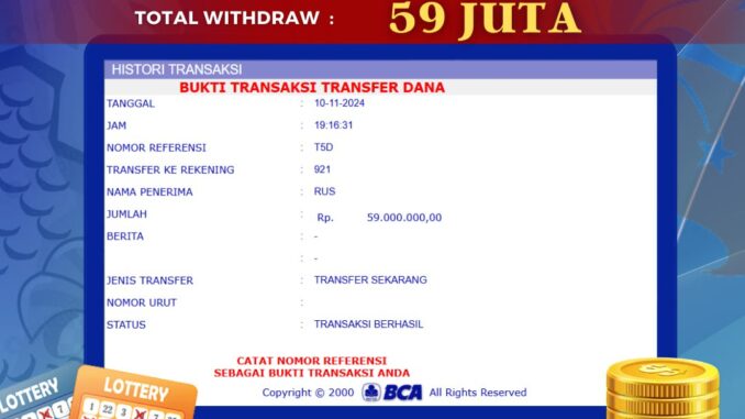 MEMBER BOLAGILA MENERIMA PELUNASAN KEMENANGAN JACKPOT TOGEL DI TOTO MACAU 4D Rp 59.000.000,- LUNAS