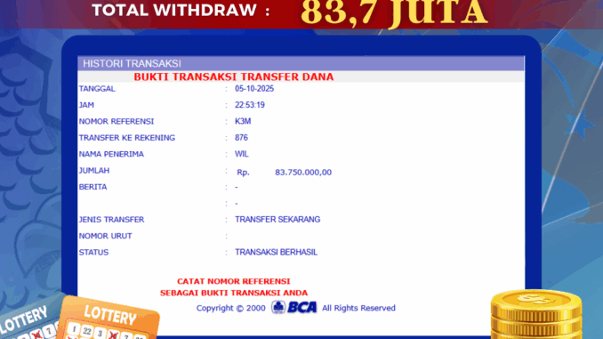 Bukti transfer yang dapat anda lihat adalah bukti SAH / VALID yang langsung di dapatkan melalui bukti transaksi dari Bank yang digunakan untuk pengiriman dana pada rekening pemilik user id. Terima kasih kami sampaikan kepada para pengguna setia BOLAGILA yang telah menggunakan situs kami, sebagai Bandar Terpercaya yang pastinya membayar semua kemenangan member hingga lunas. Apakah BOLAGILA PENIPU ? Reputasi “BOLAGILA TERPERCAYA” sudah sangat melekat.