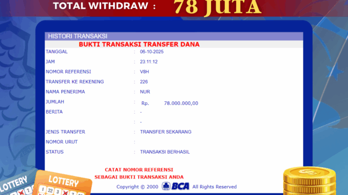Bukti transfer yang dapat anda lihat adalah bukti SAH / VALID yang langsung di dapatkan melalui bukti transaksi dari Bank yang digunakan untuk pengiriman dana pada rekening pemilik user id. Terima kasih kami sampaikan kepada para pengguna setia BOLAGILA yang telah menggunakan situs kami, sebagai Bandar Terpercaya yang pastinya membayar semua kemenangan member hingga lunas. Apakah BOLAGILA PENIPU ? Reputasi “BOLAGILA TERPERCAYA” sudah sangat melekat.
