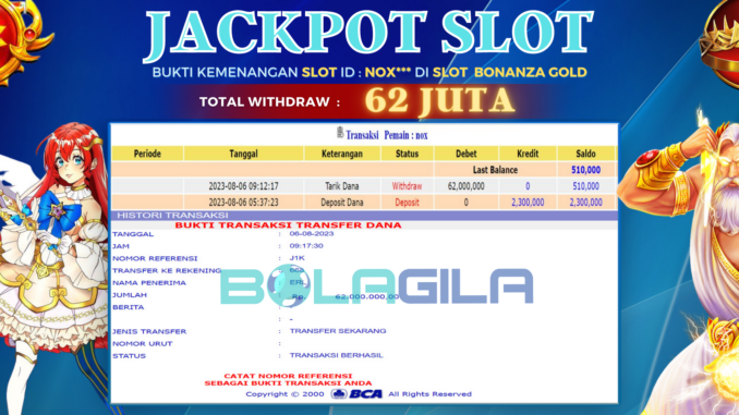 BOLAGILA JACKPOT SLOT DI BONANZA GOLD Rp 62.000.000,- LUNAS