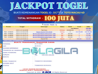BOLAGILA JACKPOT TOGEL DI TOTO MACAU 4D Rp 100.000.000,- LUNAS