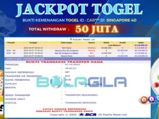 BOLAGILA JACKPOT TOGEL DI SINGAPORE 4D Rp 50.000.000,- LUNAS MEMBER BOLAGILA MENERIMA PELUNASAN JACKPOT TOGEL DI SINGAPORE 4D Rp 50.000.000,- LUNAS “BOLAGILA Situs Togel Online, […]