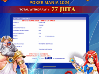 BOLAGILA JACKPOT SLOT DI POKER MANIA 1024 Rp 77.000.000,- LUNAS