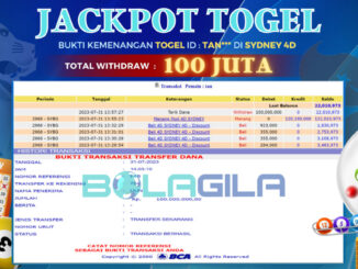 • BOLAGILA JACKPOT TOGEL DI SYDNEY LOTTO Rp 100.000.000,- LUNAS