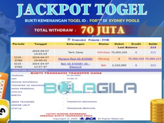 BOLAGILA JACKPOT TOGEL DI SYDNEY POOLS Rp 70.000.000,- LUNAS MEMBER BOLAGILA JACKPOT TOGEL DI SYDNEY POOLS Rp 70.000.000,- LUNAS “BOLAGILA Situs Togel Online, Casino Online, […]